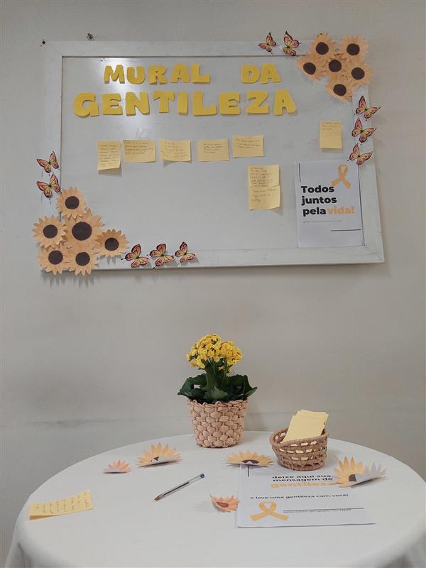 Para reforçar a importância do bem-estar, foram oferecidos momentos de autocuidado com spa para mãos e pés e massoterapia no CDEP. Além disso, um mural de gentileza foi montado no SESMT, convidando os colaboradores a deixarem uma mensagem positiva e levarem outra em troca.